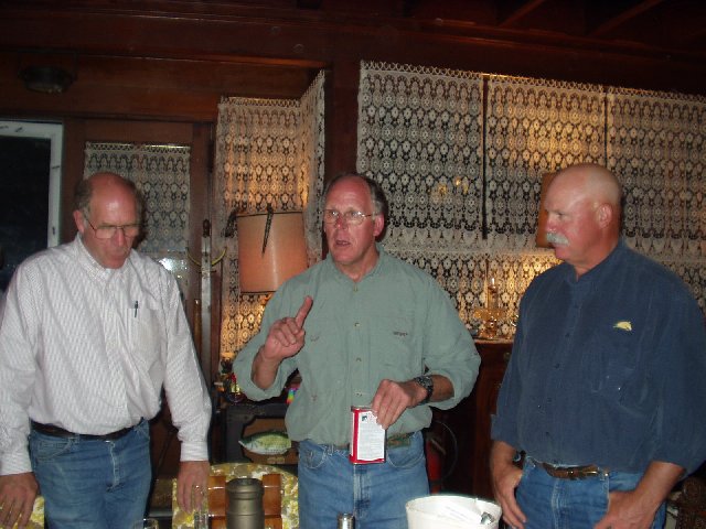 Brandt had made a miniature cannon which is standing on end at the bottom of the photo. He is taking care to admonish everyone that gunpowder and alcohol do not mix, as he prepares to pour the charge down the barrel. It is aparent that Mike and I are appreciating the gravity of his words.