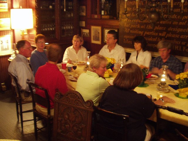 The head- end of the Friday night table. From the back side, counter- clockwise: