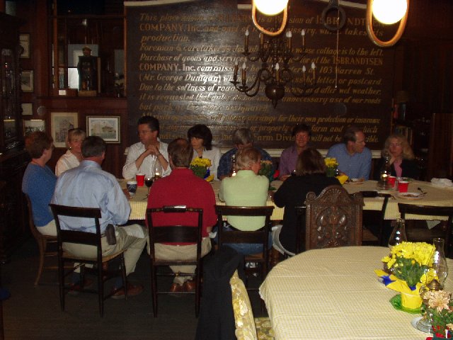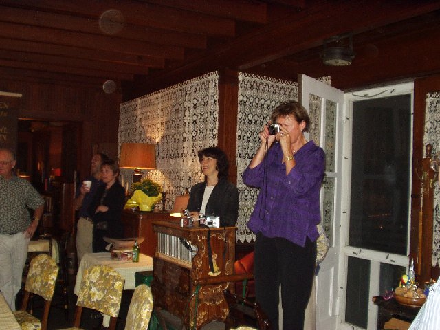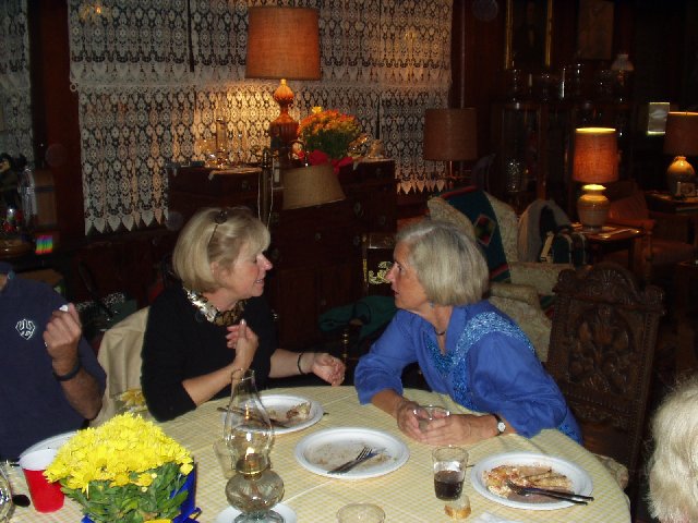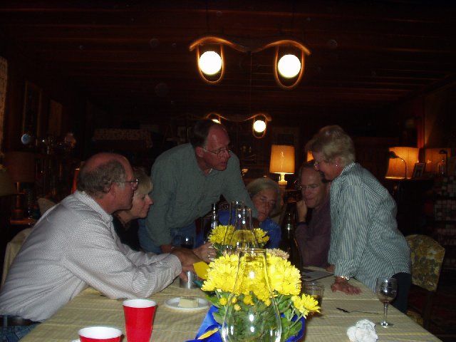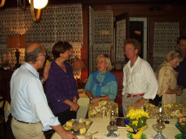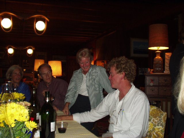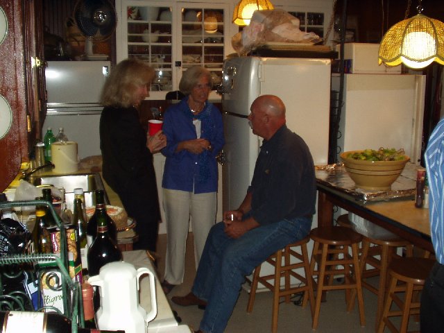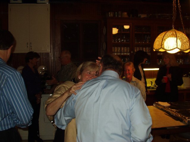 Wendy greets Eric. Over her shoulder, Fred Smith is talking with Sandy. Kathy and Barbara in