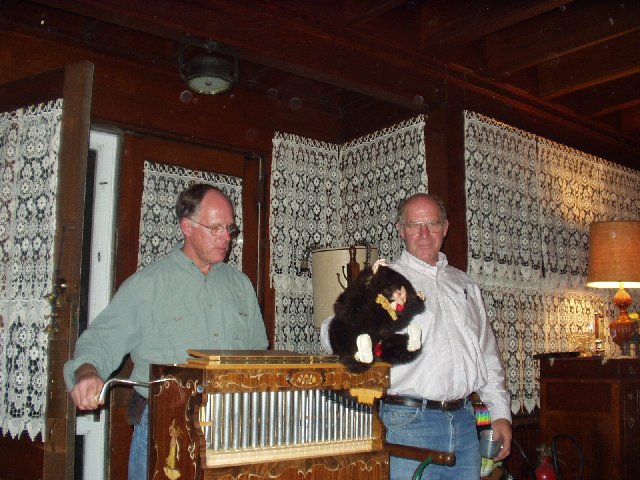Brandt and Bob. Brandt cranked a tune on the hurdy- gurdy while Bob made the stuffed monkey