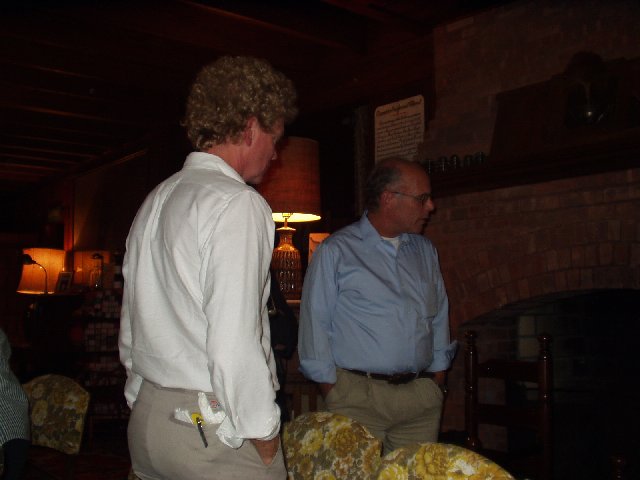Brandt Rising and Mike Bruce on the Field House porch late Saturday afternoon